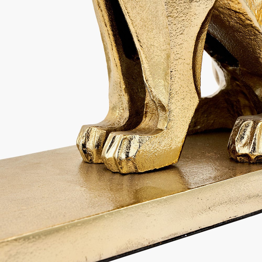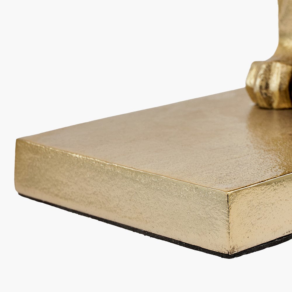 The gold metal jaguar table lamp is imposing for all the right reasons. Made in India by metal work artisans, this style statement table lamp base would look great on a console table in your hall or lounge. Dressed with a contemporary oval shade, in a neutral ivory colour cotton mix material, this is a metal table lamp that most definitely commands attention.