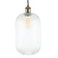 This clear ribbed glass tall shaped electrified pendant has antique brass metal detailing and a twisted black fabric flex. This pendant will add an elegant touch whether you choose to hang it separately or in multiples. Also available in an oval shape.