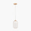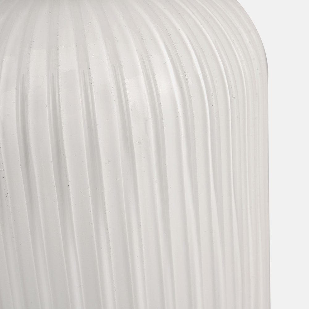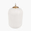 This charming white, ribbed glass electrified pendant has gold metal detailing. This pendant will add elegant light to a room wether you choose to hang it alone or in multiples. Also available in clear glass with silver metal detail.
