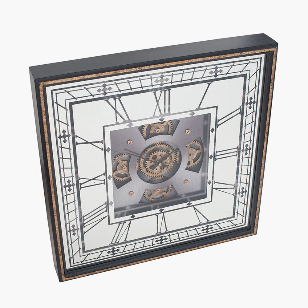 Antique Gold Wood & Mirror Square Working Cog Wall Clock
