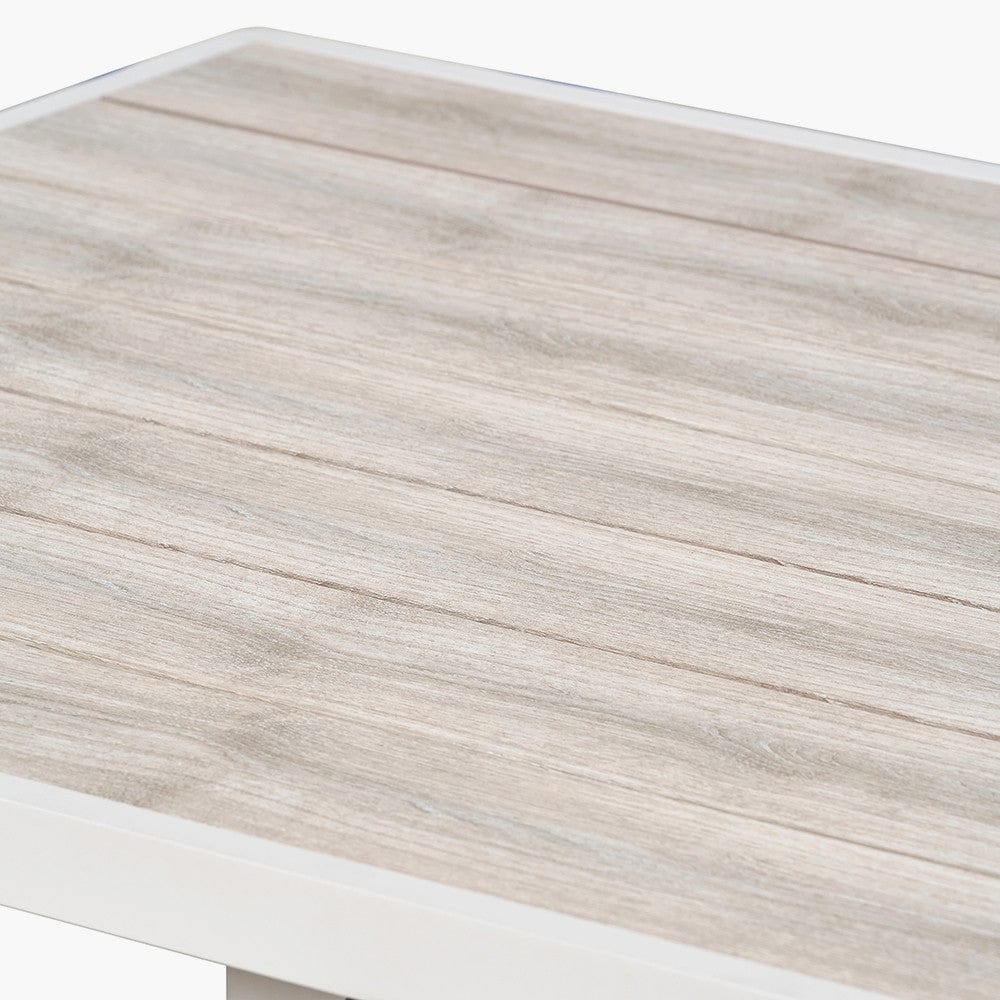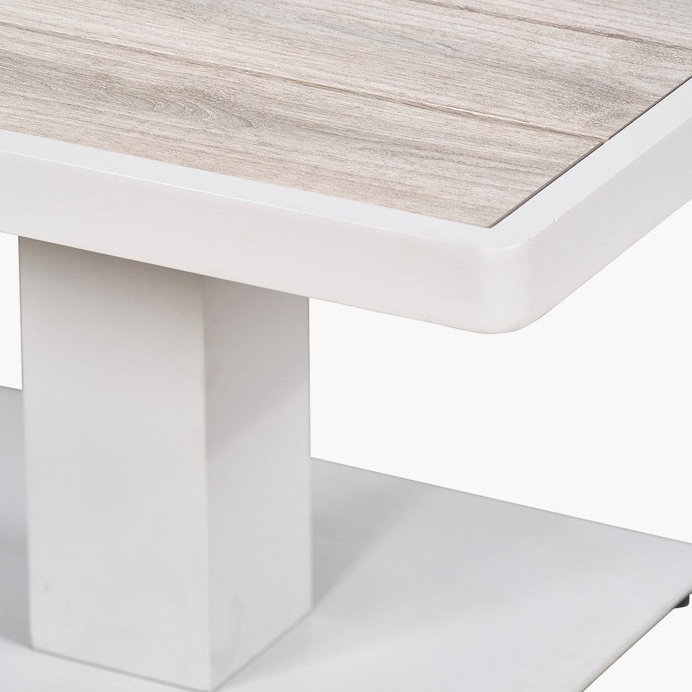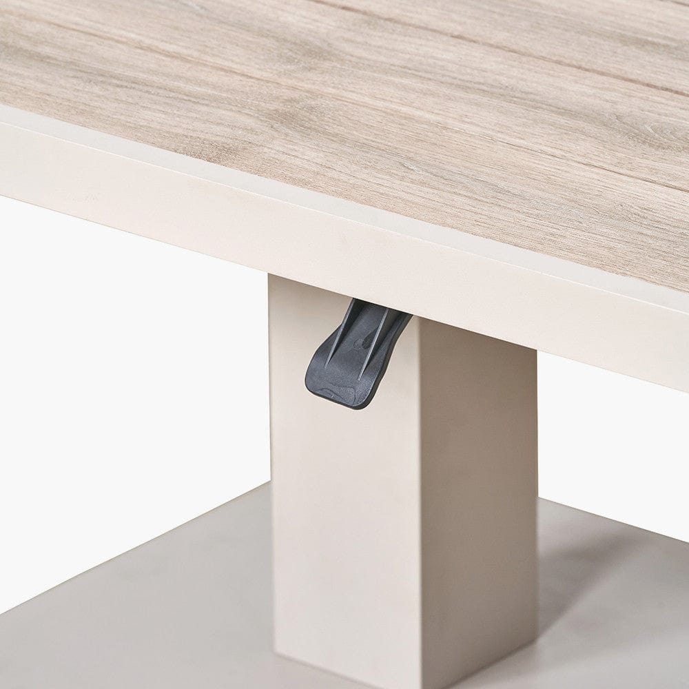 Upgrade your outdoor space with the sleek, contemporary Aruba Outdoor Corner Seating Set with Adjustable Table from House of Isabella. This luxurious set includes 1 Left Arm Sofa, 1 Right Arm Sofa, 1 Adjustable Coffee Table, and 3 Footstools for ample seating space and maximum comfort. The powder-coated aluminium frame with a Latte finish is both elegant and durable. Complemented by season-proof seat cushions in Putty Olefin fabric, this set is perfect for outdoor use. The adjustable coffee table features a glass top and Ash wood-effect finish, making it versatile for dining or lounging. With a 3 Year Structural Guarantee, this set is a must-have for any outdoor space. Plus, enjoy free UK delivery on all orders from House of Isabella.