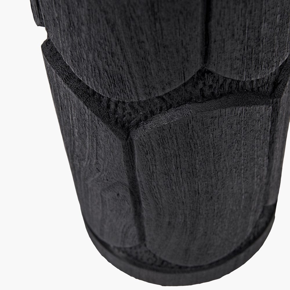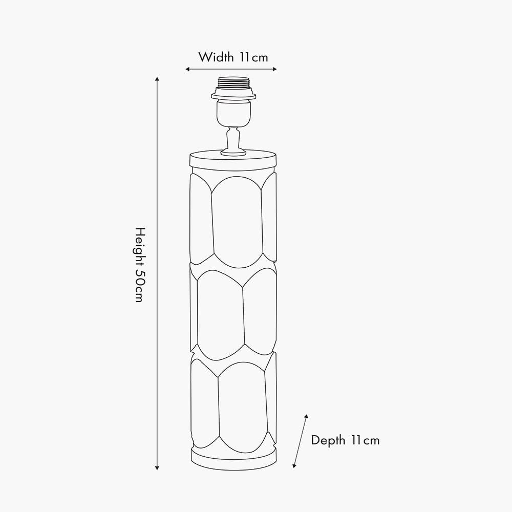 This mango wood table lamp is hand crafted in India and is the perfect addition to any home. Its soft black finish and elegant hand carved lozenge design provide a timeless, sophisticated look. The decorative embossed pattern adds a unique touch while the simple style blends effortlessly with any decor. Recommended lampshade size: 35cm diameter.