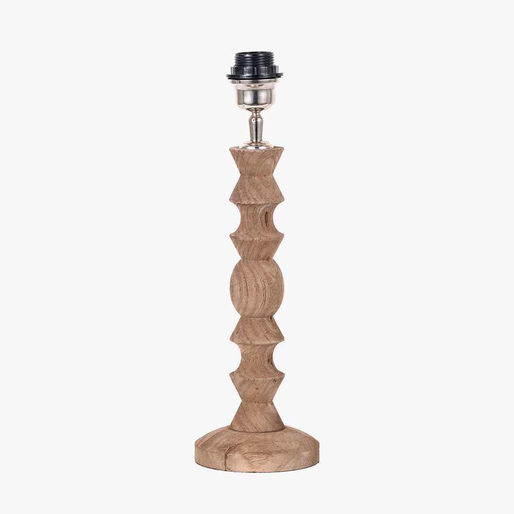 Add rustic elegance to your space with this tall, handcrafted Indian table lamp made from mango wood. Featuring a refined turned wood design and a natural wash finish, it offers a modern, clean-lined aesthetic that complements neutral interiors beautifully. Pair it with one of our slubby linen or cotton shades for a sophisticated, timeless look. Recommended Shade 35cm diameter.