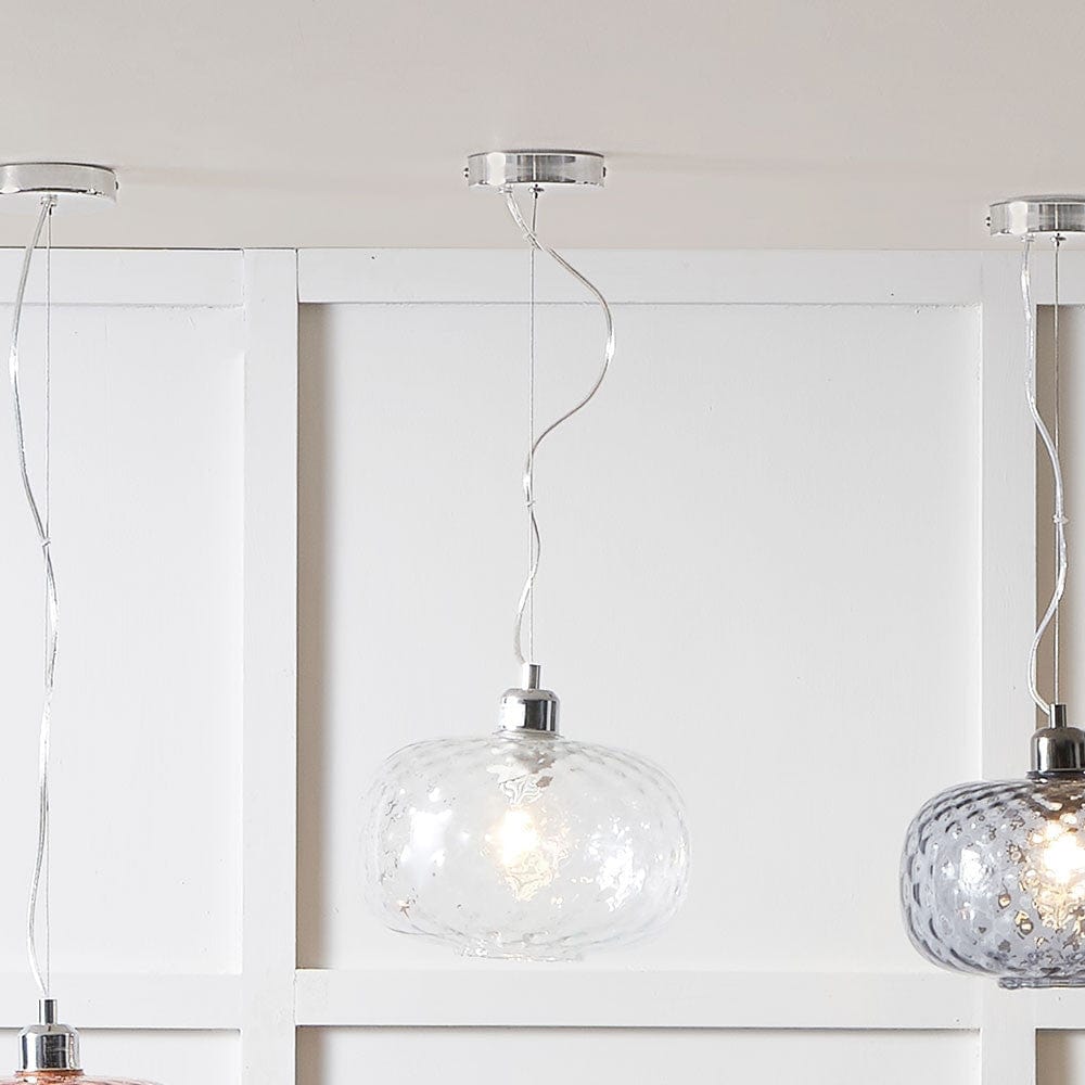 Clear coloured glass creates this timeless, textured pendant. With an oval effect, this style has a modern charm which is guaranteed to bring a stylish elegance to your home.