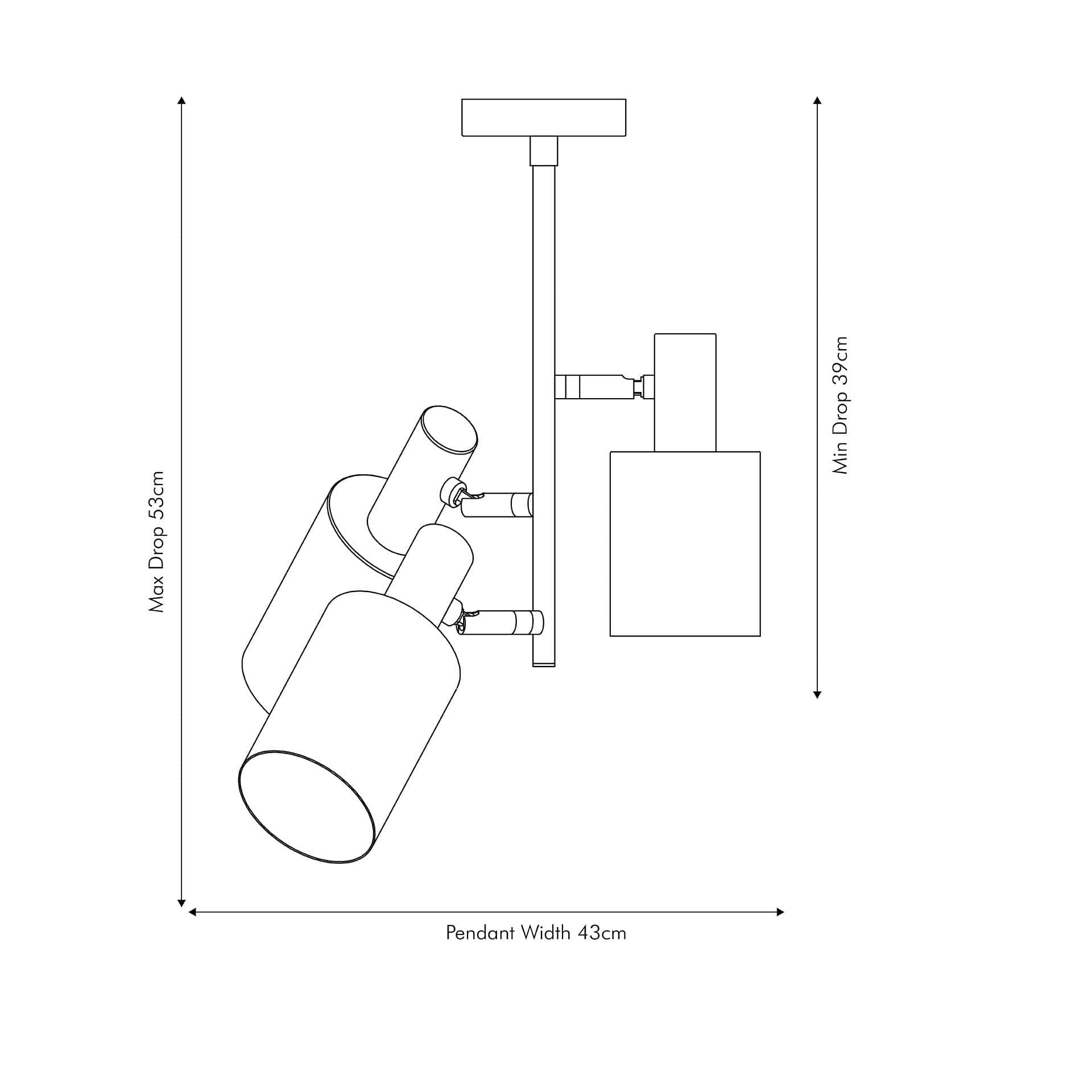 Contemporary with retro influences, this pendant features three movable heads allowing you to direct light in a way that suits you. Black and copper metal finishes are beautifully paired in this distinctive, stylish piece and can be accessorized perfectly with a matching floor and table lamp or single drop pendant.