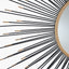 This flamboyant and stylish black and gold metal starburst wall mirror is definitely a talking point. The intricate art deco style framed mirror will look fabulous in any interior. This mirror is perfect for drawing attention to your accent wall and a design piece for an incredible room setting. Not suitable for bathroom use.