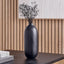 This striking, tall black metal vase adds a contemporary touch to any home decor. Its sleek bullet shape makes it the perfect statement piece for a console table, sideboard, or side table, adding interest and style to any space.