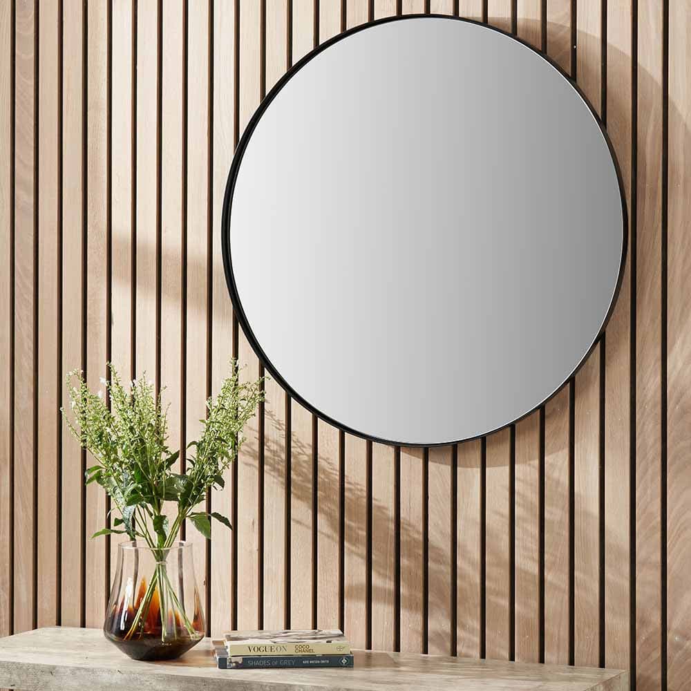 This contemporary round wall mirror is edged with a beautifully simple slim metal frame and finished in a minimalistic matt black. The neat sizing of this mirror makes it the perfect addition to a smaller space and will stand the test of time with its timeless styling. Not suitable for bathroom use.