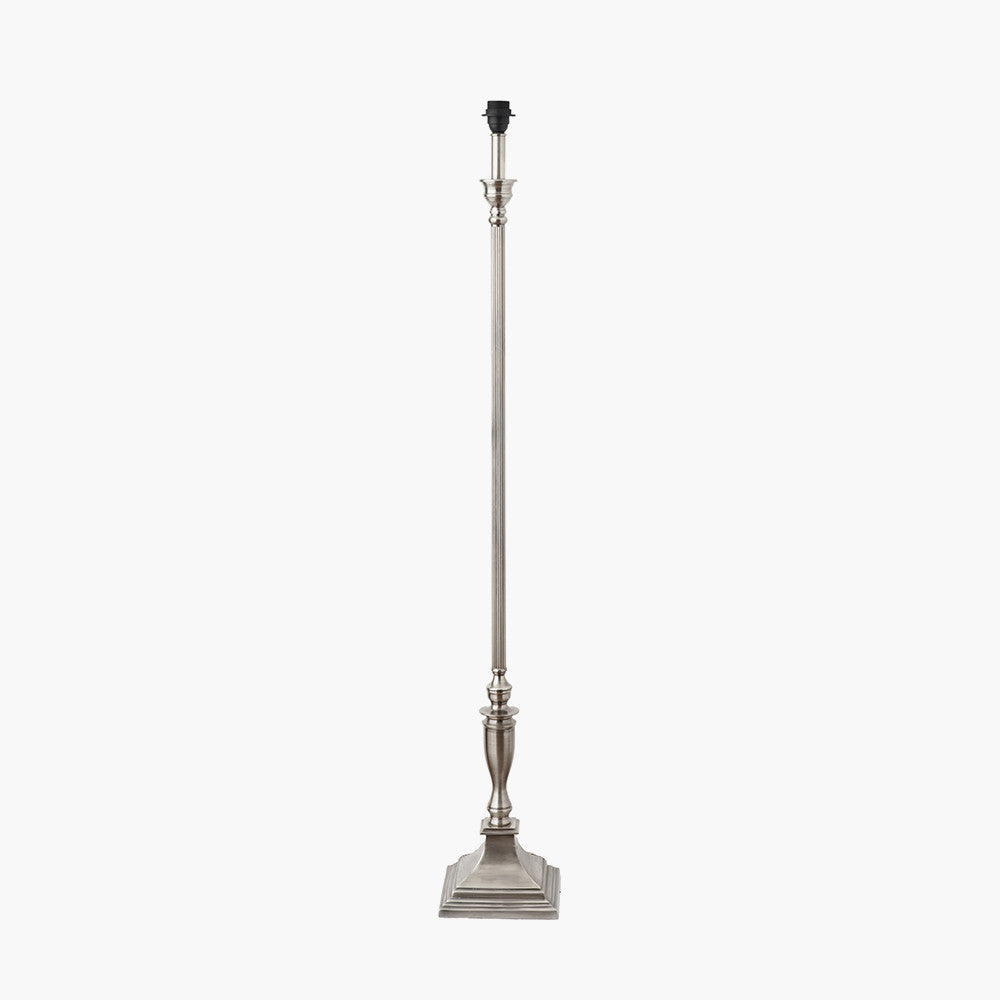 Classically styled, this antique silver metal lamp base, with ribbed detail on the column, will add a hint of the classical to your look. Styled with an open weave, white cotton cylinder lamp shade, the luxurious heavy-weight shade ensures this floor lamp is a statement piece.