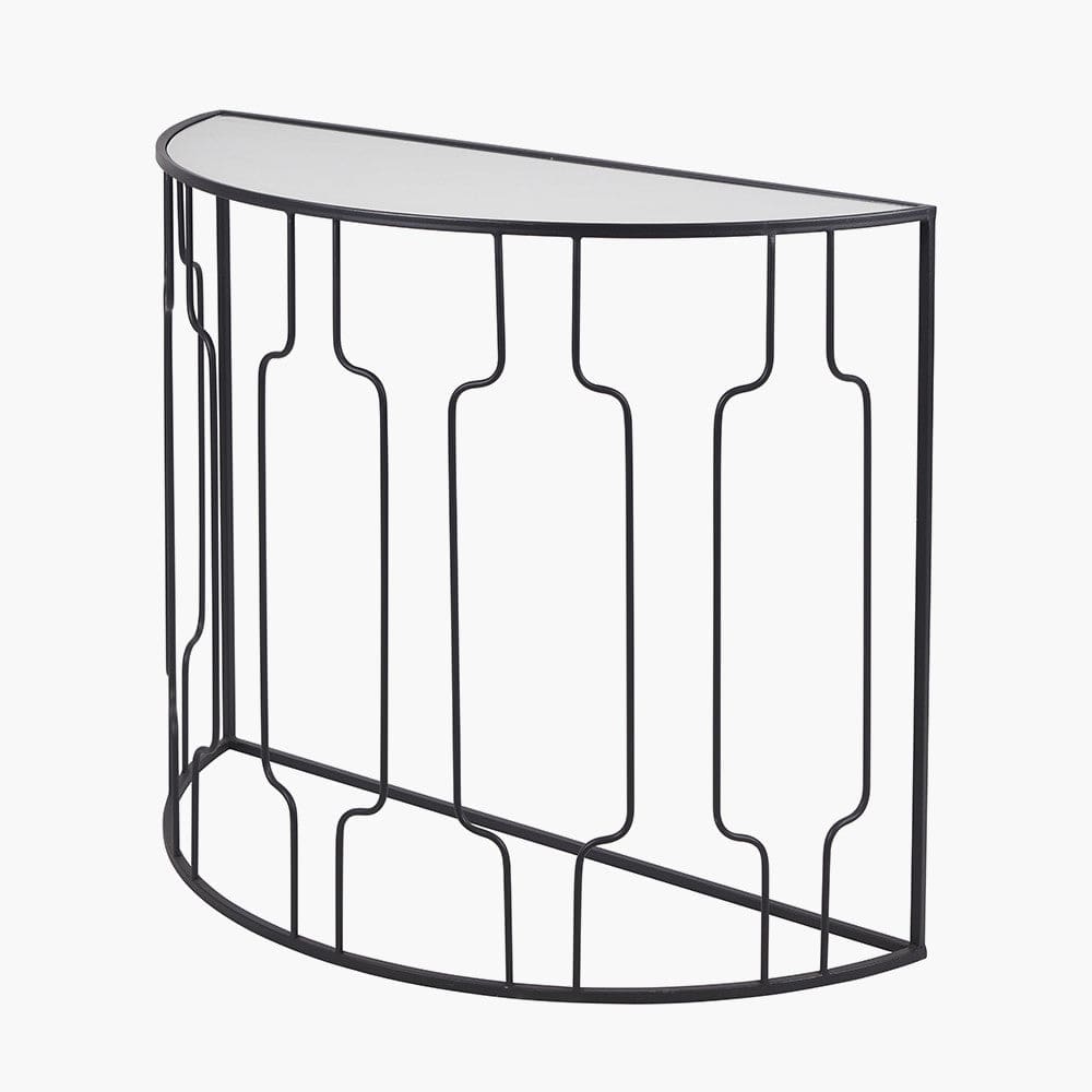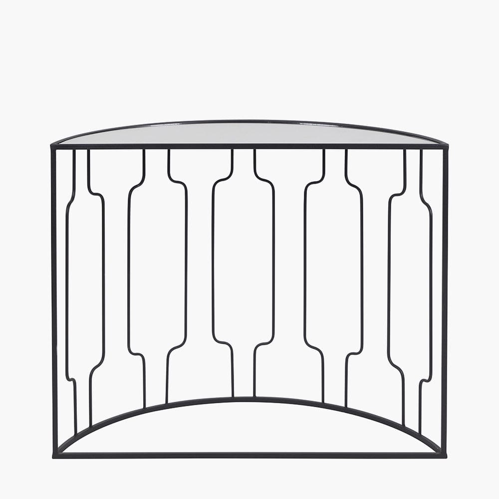Caprisse Mirrored Glass and Graphite Metal Half Moon Console Table