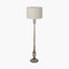Add a little rustic charm to your room! This grey floor lamp is a beautifully handcrafted Indian floor lamp showcasing elegant turns and finished in a washed grey and white finish which will sit perfectly in any neutral interior. The wood floor lamp base is adorned with a modern grey linen cylinder lamp shade in an open weave fabric, which allows the light to filter through, creating the perfect ambience.