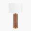This modern tall ceramic table lamp with a dark wood effect finish is complemented by the gold metal details offering a contemporary look. The well-proportioned table lamp is finished with a white faux cotton, lined lampshade, ensuring it will fit into a multitude of interiors.