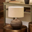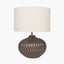 Looking like an ancient bronze artefact from a Greek island you will be surprised to learn this lamp is ceramic with a clever metallic finish. To complement this base it is supplied complete with a textured linen-look shade.