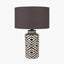 This gorgeous ceramic base most certainly commands attention with a stunning all-over Ikat design in an on-trend monochrome colour palette. The stylish table lamp base will suit multiple interior styles from contemporary to scandi and will look fabulous with a range of shades to suit your personal style, we recommend a 40cm shade.