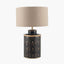 Crafted in India with an elegant art deco design, this striking hand painted lamp base is made from lacquered iron and features a sophisticated antique black finish. The base is adorned with a gold art deco arch pattern that creates a stunning contrast. It is perfectly complemented by a taupe cotton mix cylinder lamp shade, making this lamp a standout artisan piece that will be the focal point of your space.