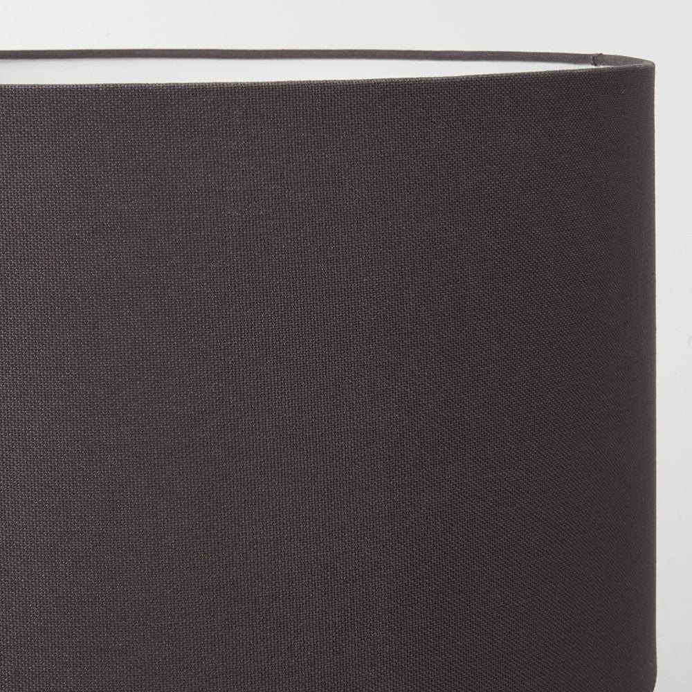 This simply elegant, metal candlestick lamp base with a classical square foot is finished in shiny nickel and adorned with a luxurious, heavyweight shade. The open weave, grey cotton cylinder lamp shade, offers a natural yet opulent finish.