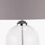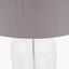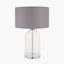 Add some classic charm to your home with this Cloche Clear Glass and Silver Table Lamp. Finished in clear glass with silver metal detailing, it will add a subtle elegance and a timeless design to any side table or console. Topped with a neutral grey faux cotton lined lampshade, it will add a subtle elegance and a timeless design to any side table or console.