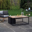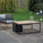 Cosiloft 120 Black and Teak is a stylish and functional addition to any outdoor lounge area. With its teak wood top and black frame, this coffee table is not only visually appealing but also durable. It can hold up to a 5KG gas canister (not included) and is available in other variations such as a concrete effect top with a black frame or a teak wood top with a white frame. The table is completely weatherproof, allowing you to confidently leave it uncovered. However, we do offer a weatherproof cover for the table, but it is not recommended for use on the teak topped tables as teak is a hardwood that ages beautifully when exposed to the elements.