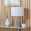 Illuminate your space with style and elegance, with our Devony ceramic taupe table lamp base. The intricate pleated detail creates a stunning ridged texture and is finished in a neutral, taupe glaze. This table lamp base is a true work of art and paired with the white, open-weave cylinder linen shade, it really does make a stunningly stylish statement.