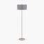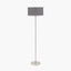 The Elin Floor Lamp is finished in an elegant brushed silver and complemented by a faux cotton steel grey shade. The base is a simple slender stick which is a contemporary look for any room.