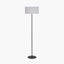 The Elin Floor Lamp is finished in a striking matt black and complemented by a faux cotton ivory shade. The metallic lining allows the light to shimmer when lit. The base is a simple slender stick which is a contemporary look for any room.