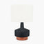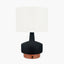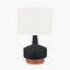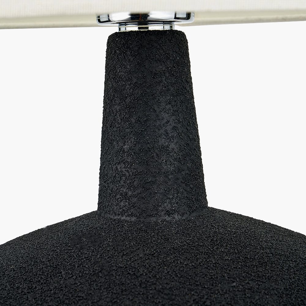 This stunning ceramic table lamp is most certainly eye-catching. The base is finished with a dark wood grain effect, contrasting with the black, sand textured body perfectly. The contemporary shaped base is topped off with a white faux cotton lampshade, to complete the look.