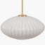 This milky white glass oval pendant has a delicately ribbed texture and is finished with gold metal detailing for a modern look. Add in a calex bulb for a diffused look and hang alone or in a set to add an element of drama to your room. Also available in clear glass with silver metal.