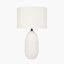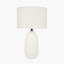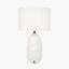 Our vintage texture ceramic table lamp in a white colour palette is finished with a natural cracked effect, giving the tall dome-shaped base a tactile, aged effect. The beautiful lamp base that will suit any Coastal or Scandi-styled interior perfectly, is finished with an off-white faux cotton lined lampshade.