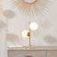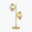 This striking, contemporary brushed brass metal and white orb glass table lamp has a futuristic elegance that would look amazing in any contemporay interior. Place on a console table in your hall or a side table in your lounge to provide the perfect light source and instant style. Pair with the matching floor lamp for further impact.