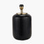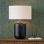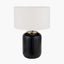 This timeless stripe glass table lamp features a unique cold-cut glass design in a classic black colour. Its modern look creates an eye-catching effect. Finished with an open-weave cotton cylinder white lamp shade, this table lamp is sure to turn heads.