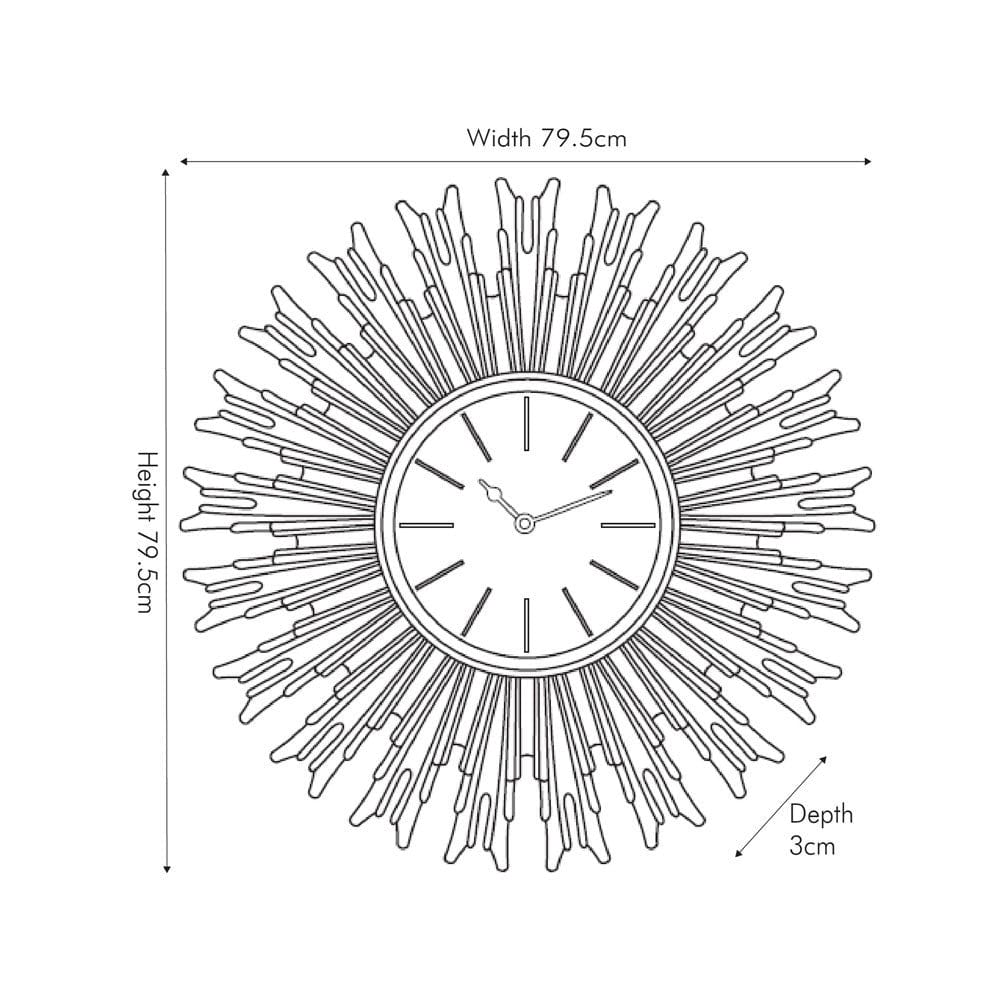 Travel back to the 1920's art deco period with this striking fold metal starburst clock. The intricate gold frame creates a flamboyant statement that demands attention whilst ensuring sophistication. Matching mirror also available.