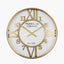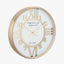 This contemporary wall clock with a clean white face, gold metal detailing, and gold frame has been lovingly crafted in India. This captivating, circular clock perfectly mixes numbers and Roman numerals, ensuring the timepiece makes a contemporary statement.