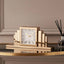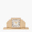 This Art Deco style table clock with a striking square face and traditional Roman numerals, is a statement timepiece. The well-proportioned table clock crafted in India from gold metal will sit perfectly on your desk, console table, or mantelpiece.