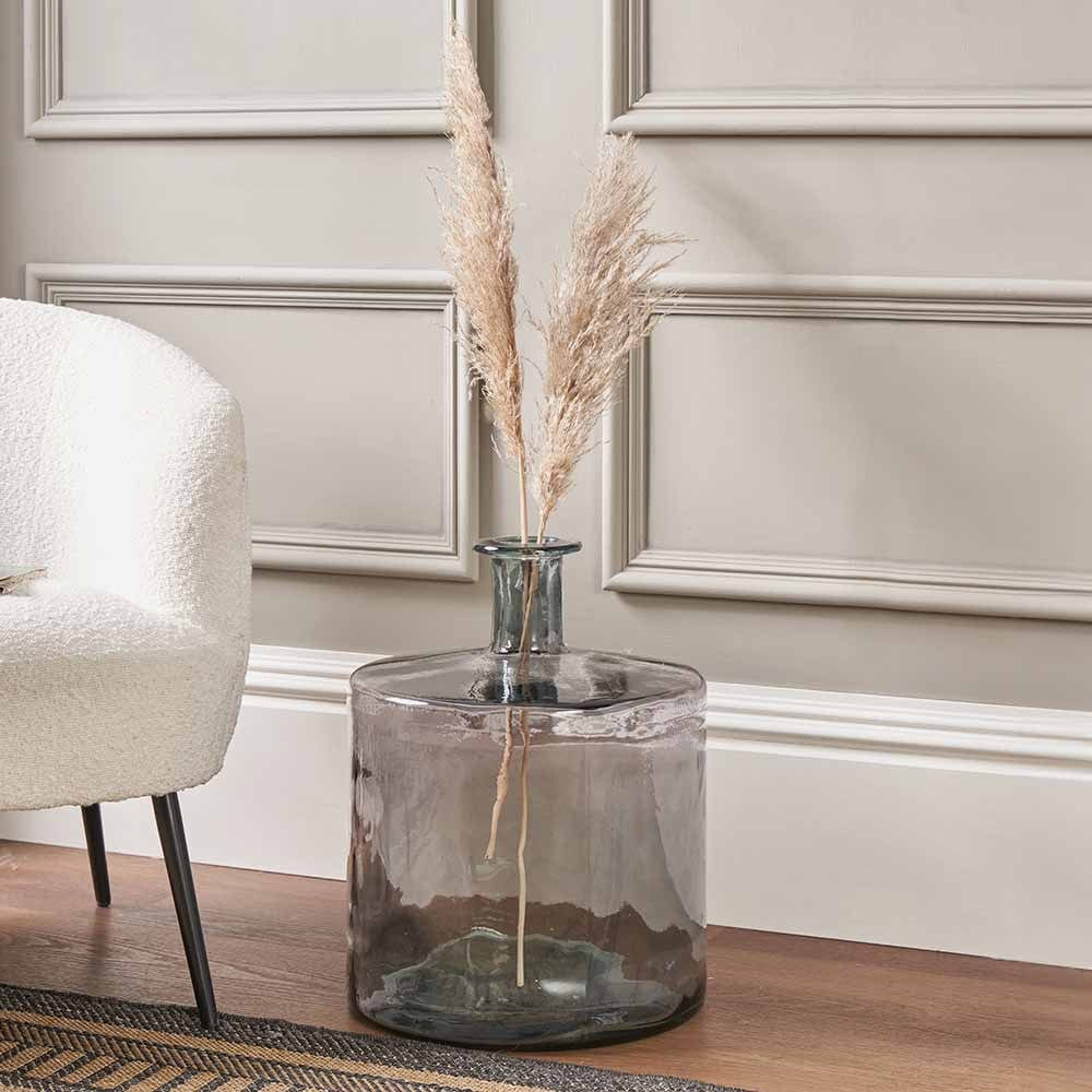 This well-proportioned recycled glass bottle vase is a must-have statement piece, offering style in abundance. Made in Spain, the stunning bottle shape has been finished in a soft grey hue and will look fabulous with a bunch of fresh or dried flowers or on its own.