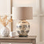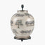 The iconic Jenny Worrall brand boasts a range of truly exquisite table lamp designs. Created using the traditional technique of potichomania, delicate decals are applied by hand within the base of the lamp. Each lamp design is then carefully built up with layers of hand-sponged lustre and colour to create the finished effect. The Guinea Fowl design is pictured on a cream champagne colour background using a monochrome palette for the birds and trees. The gold accenting gives the design depth and is synonymous the the open weave taupe cotton cylinder lamp shade.