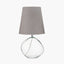 Introduce a touch of sophistication to your living space with our Hallie Clear Glass and Grey lampshade Table Lamp. The organic-shaped glass base is topped off perfectly with a tapered, grey linen mix lampshade, ensuring this table lamp will slot into any interior space perfectly.