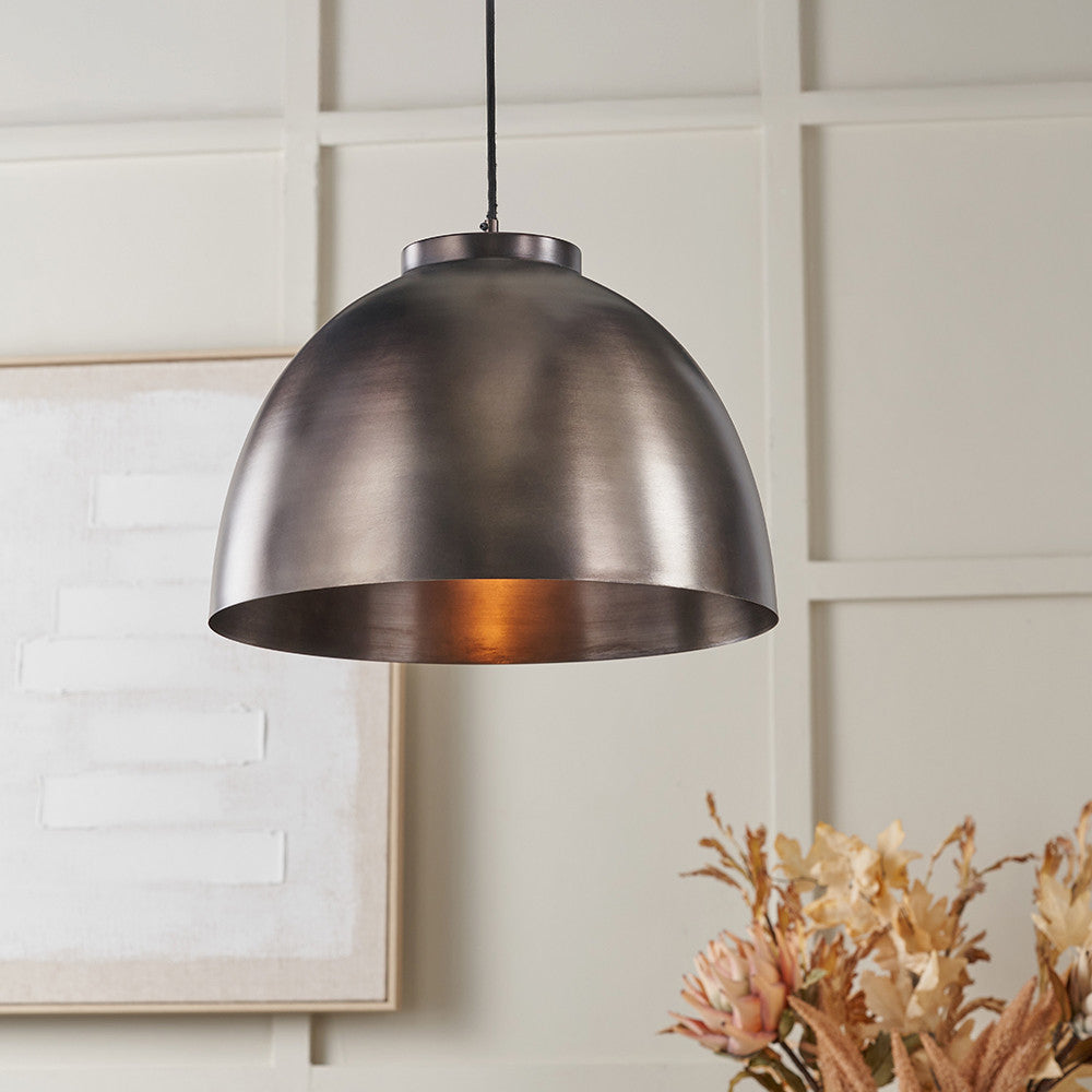 This well-proportioned, antique bronze -coloured, domed metal pendant has been lovingly crafted in India and is guaranteed to make a statement. The versatile Industrial-style ceiling pendant will be a fabulous addition to your home.
