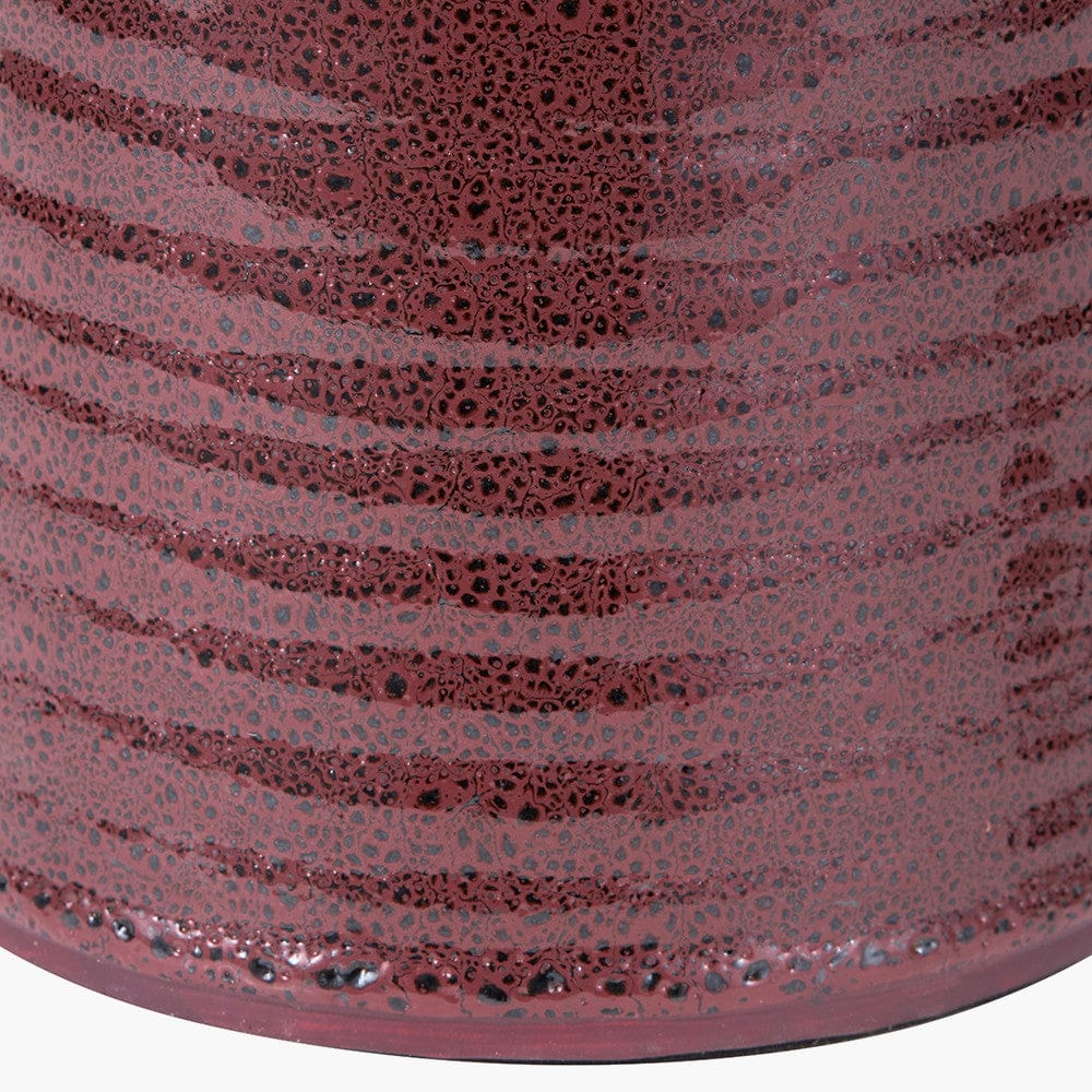 The stunning ceramic table lamp with a subtle ribbed textured effect is finished in a mulberry reactive glaze and topped off perfectly with a tapered, self-lined white shade. This versatile table lamp will look fabulous in any interior, adding subtle colour, tactility and style.