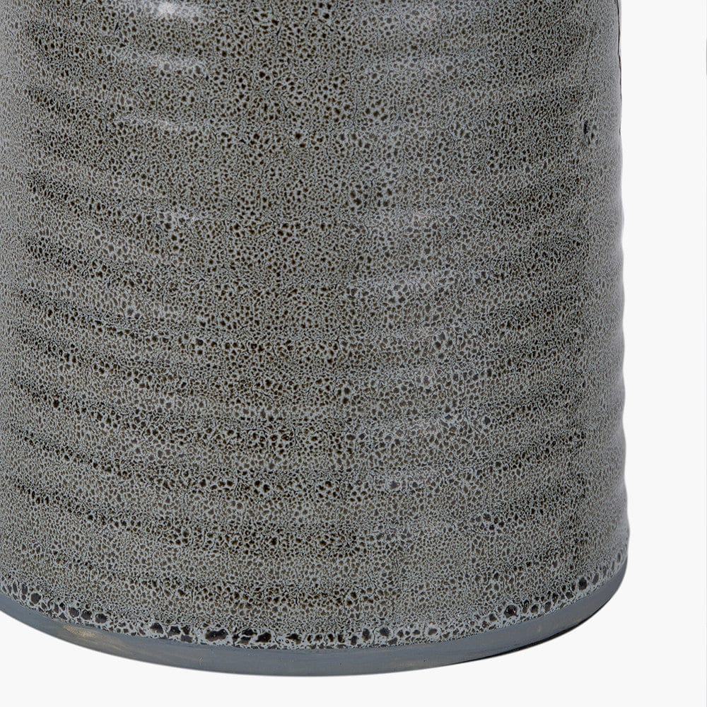 The stunning ceramic table lamp with a subtle ribbed textured effect is finished in a smokey green reactive glaze and topped off perfectly with a tapered, self-lined white shade. This versatile table lamp will look fabulous in any interior, adding subtle colour, tactility and style.