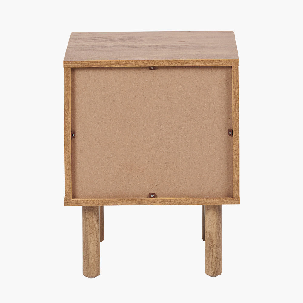 Thoughtfully designed, add a natural touch to your space with this textured rattan bedside table from the Henrik collection. It comes flat-packed with easy-to-follow assembly instructions for convenience. Crafted from a premium wood veneer in neutral tones and featuring a rattan front, this bedside table effortlessly complements any interior.