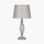 This stunning nickel metal table lamp base has a unique twist design and comes complete with a metallic silver coloured polysilk tapered shade. Beautifully proportioned, this lamp will be a lovely addition to any room.