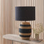 This stylish black and natural striped seagrass table lamp is the perfect finishing touch for your home. The stylish monochrome, yet scandi feel to this lamp base, pairs beautifully with the black linen cylinder lamp shade. The lamp shade is self-lined with an open weave material that allows the light to filter through the shade, creating an ambient glow throughout your home.
