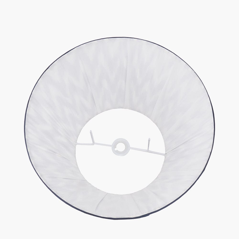 The Kamilah 45cm cotton mushroom pleat, tapered lampshade showcases a bold blue and white chevron pattern, with a deeper blue binding, adding a fresh and contemporary touch to any room. This eye catching design pairs effortlessly with a variety of lamp bases. This lampshade features a reversible gimbal, allowing it to be used with either a table or floor lamp base, or reversed for use as a ceiling pendant.
