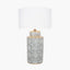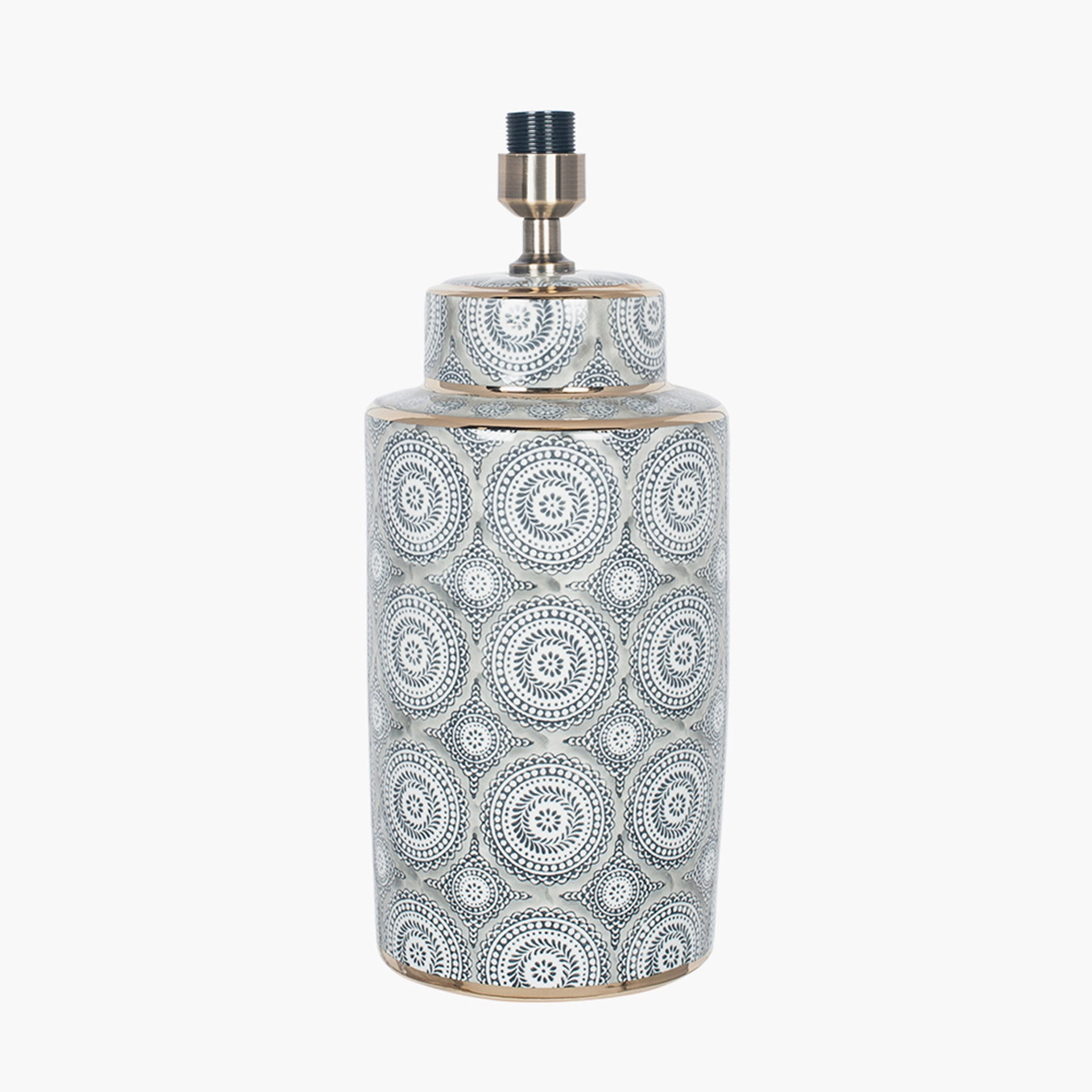 Ceramic lamp with bold geometric grey and white circle pattern finished with a gold detailing. Take a look at our shade page to complete the look. Recommended lampshade size: 40cm diameter