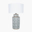 A charming ceramic table lamp base with a bold geometric grey and white circle pattern, complimented with gold detailing. This table lamp sits beautifully with the simple, modern ivory cotton mix lamp shade, a winning combination that suits many interior styles.