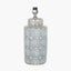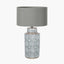 A beautiful ceramic table lamp base with a bold geometric grey and white circle pattern, complimented with gold detailing. This table lamp looks lovely paired with the simple, modern steel grey cotton mix lamp shade, which is sure to create a focal point in your room.