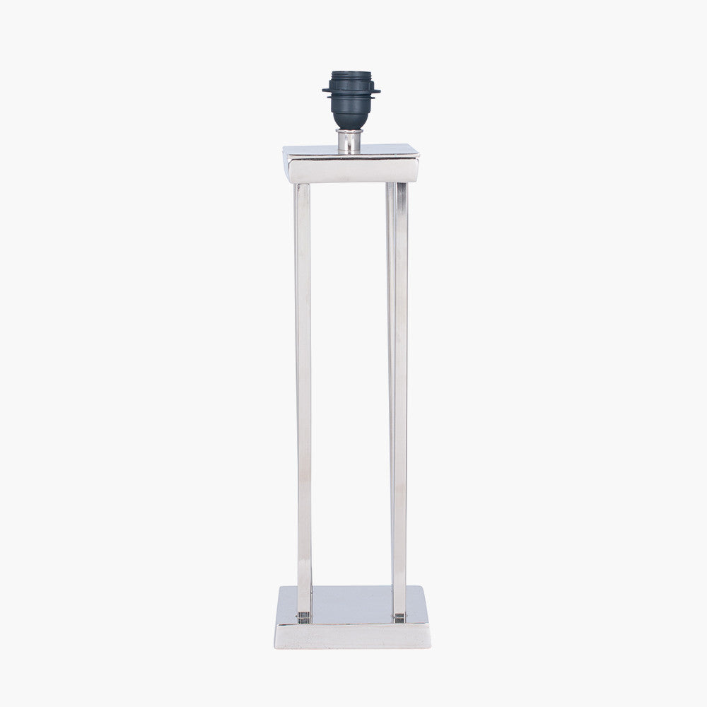 Channel the hotel vibe with this gorgeous nickel table lamp base. Contemporary in style, couple with a statement shade from our range for maximum impact. A floor lamp also available. Recommended lampshade size: 40cm diameter