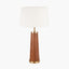 The contemporary Laurence table lamp, conical in shape creates a bold statement with its melange of tan buffalo leather and brass metal detailing. The stunning lamp base offers a tactile finish and looks great with a neutral shade to complete the look. We recommend a 40cm shade.