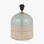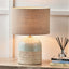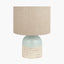 The scandi-inspired stoneware table lamp combines a hand applied textured natural finish juxtaposed with a sleek duck egg colour glaze. Made in the Phillippines, this statement table lamp base is finished perfectly with a beautifully rustic open weave jute linen cylinder lamp shade.