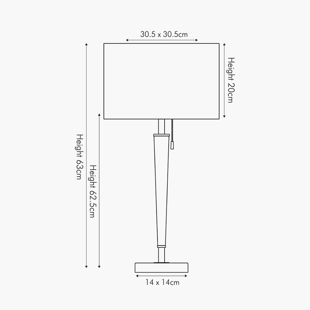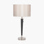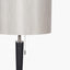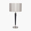 A sleek and modern contemporary table lamp. The Lowry has a look of hotel chic finished with a matt black tapered stem and contrasting brushed silver details. Topped with a slubby grey faux silk shade and pull switch detail for added functionality. Also available as a floor lamp and wall light.